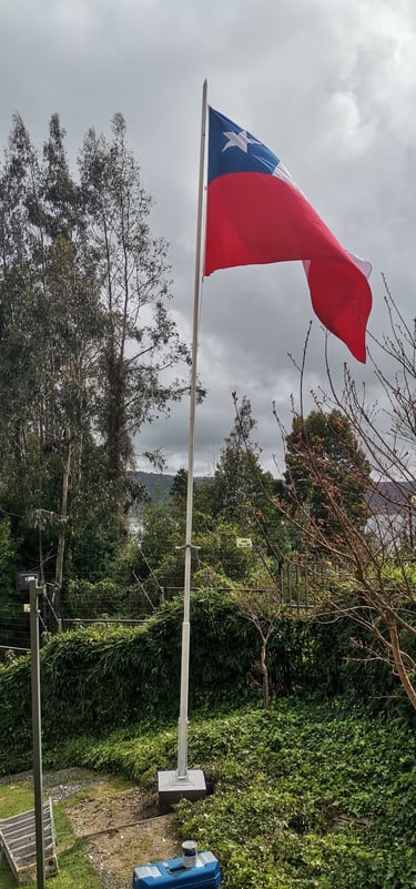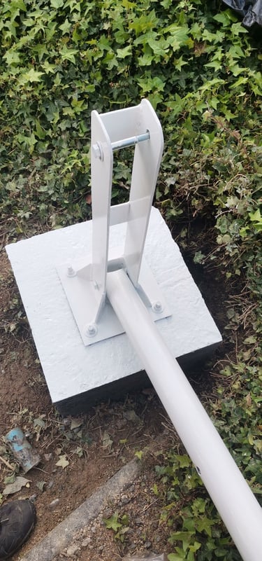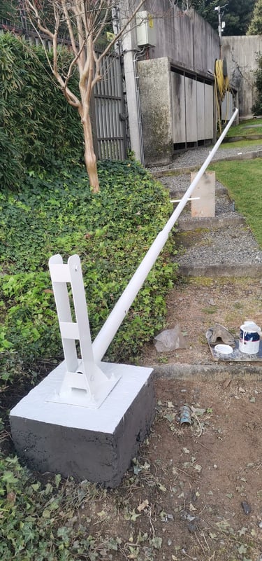 Manufactura e instalación de mástil reclinable de 8 metros altura sobre base de cemento y fierro.