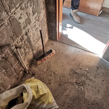 Pintura cielo y renovación de enchapado de madera en marco puerta